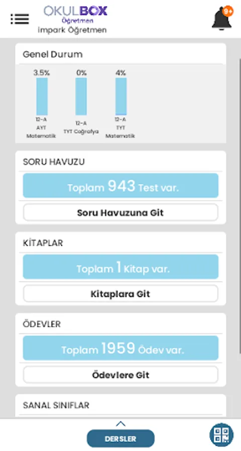 You can create a test from thousands of questions paired with the subjects and achievements determined by the Ministry of National Education Board of Education and Discipline and assign these tests as homework. You can get Pdf printouts of the tests. You can check the students' homework status and see the correct and incorrect numbers.