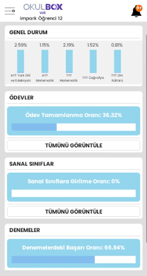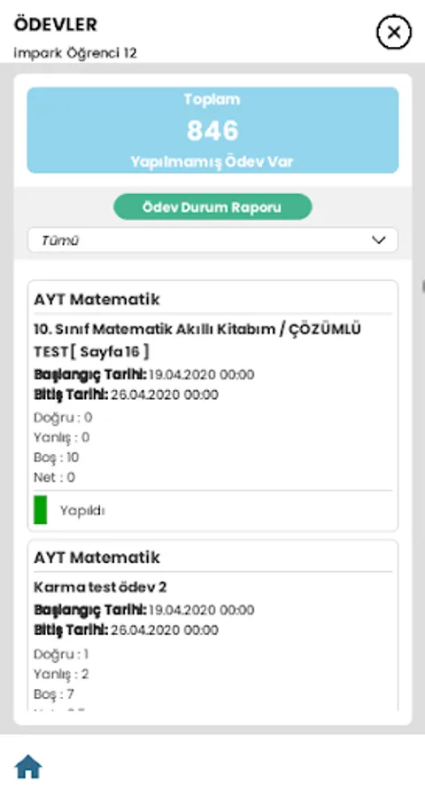 Our parents can follow the status of their children at school with this application. You can see the success of the practice exams, the status of the given assignments, the status of the lessons, daily virtual classroom activities.