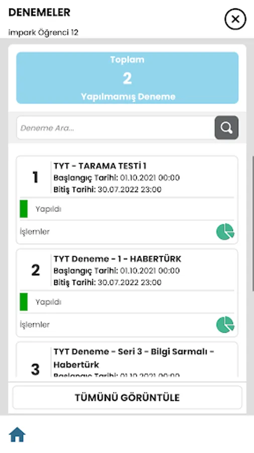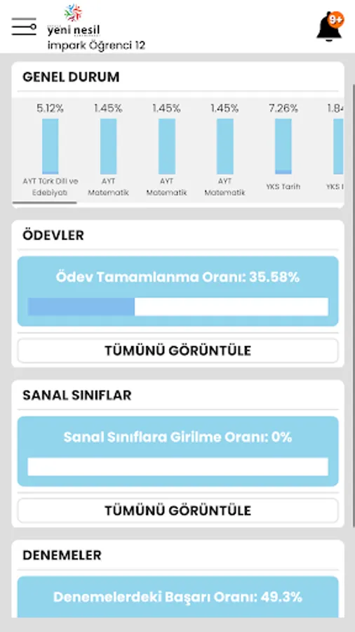 Our parents can follow the status of their children at school with this application. You can see the success in the practice exams, the status of the given assignments, the status of the lessons, daily virtual classroom activities.