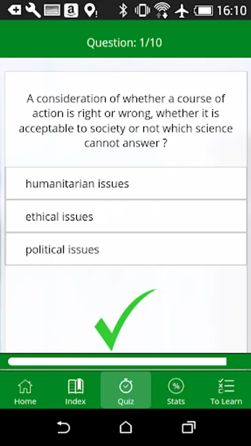 Quiz & Learn via timed interactive quizzes with 3 options of 10,30 or 50 questions