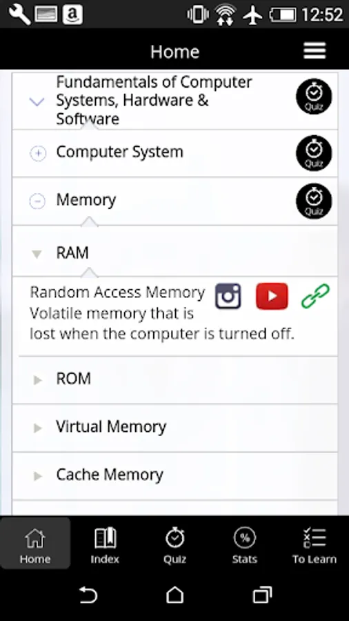 Quiz & Learn Computer Science via timed interactive quizzes with 3 options of 10,30 or 50 questions