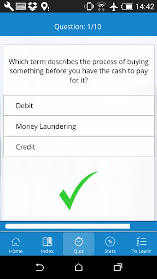 Quiz & Learn via timed interactive quizzes with 3 options of 10,30 or 50 questions