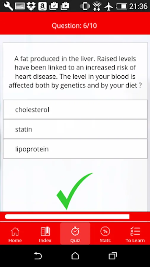 Quiz & Learn via timed interactive quizzes with 3 options of 10,30 or 50 questions