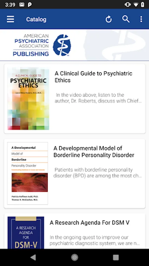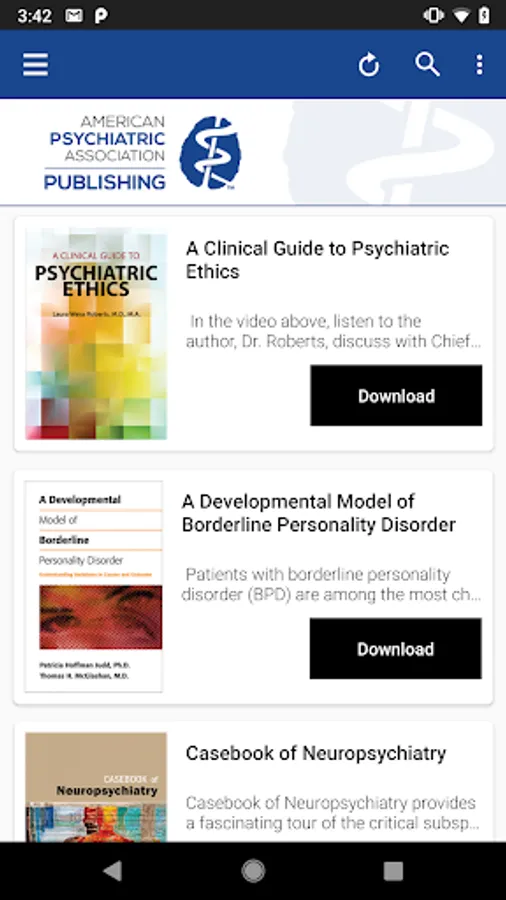 American Psychiatric Association Publishing app provides access to APA Publishing eBooks. Sign into the APA eBooks app using the same account information used to purchase the eBook.