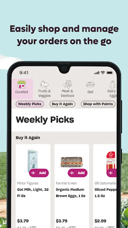 With each weekly grocery order, you can help build a less wasteful world. Choose from 500+ intentionally sourced items that help reduce food waste—and we’ll deliver them right to your door. Shop from anywhere, manage your orders on the go in the app, and get push notifications when your shopping window opens.