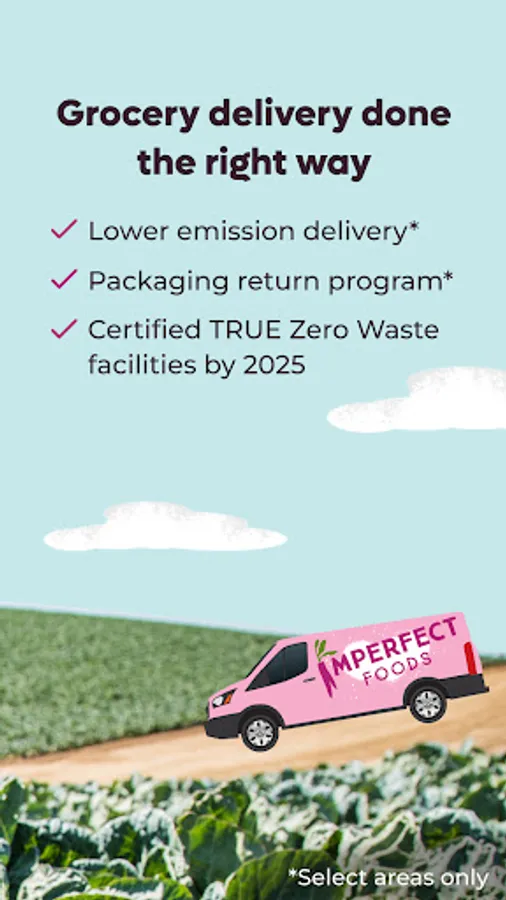 Imperfect delivers groceries to your neighborhood in one trip, with one van, helping avoid harmful CO2 emissions and extra trips to the grocery store. We’ll also take back your packaging and take care of reusing or recycling it.