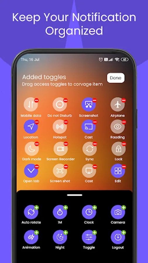 Toggles like auto rotate, dark theme, data saver, screen cast, screen recording, timer, and screen lock are also used if you like to use.