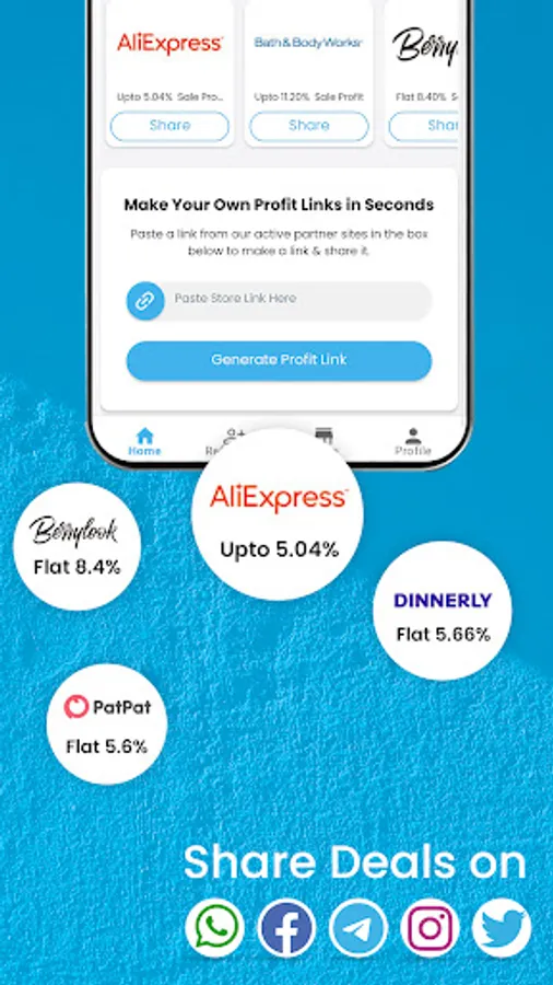 ★ Choose online deals of 100+ Stores, Share it with your Friends and Family members and Get Paid for confirmed Sales
