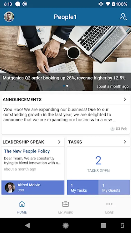 PeopleOne makes every conversation, process and task easy and puts all your tools in one place. This mobile intranet solution creates a connection between content and conversation to help your business work smarter, not harder.