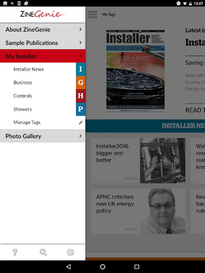 ZineGenie provides an Android view of magazine published as digital editions by Connected Digital.