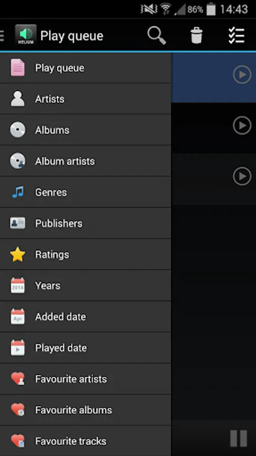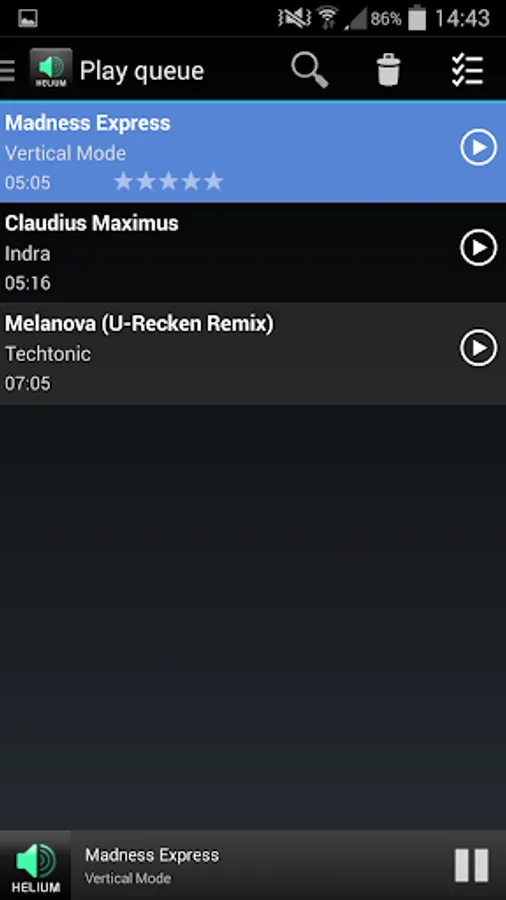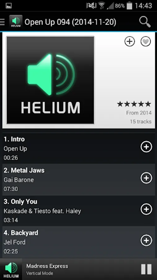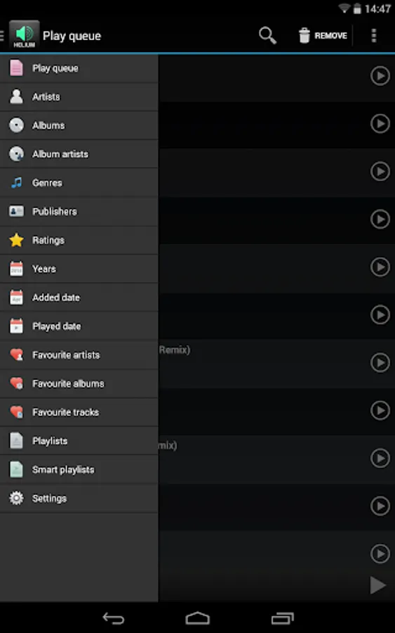 Helium Streamer enables the playback of Playlists, Searches and User Favourites.