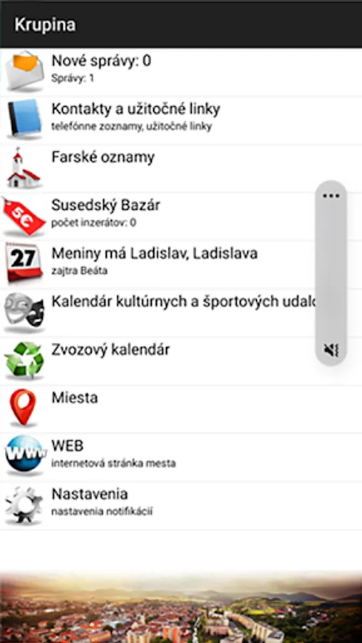 - Important information immediately anywhere and directly from the source - power, water, gas, local radio announcements, organized events, traffic shutdowns, etc.