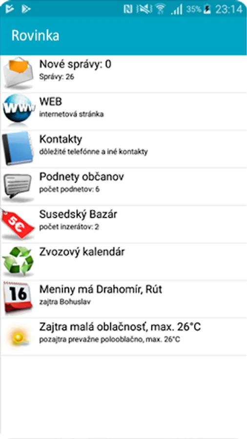 - Important information immediately anywhere and directly from the source - power, water, gas, local radio announcements, organized events, traffic closures, etc. Information immediately available anywhere and outside the place of residence (eg during holidays)