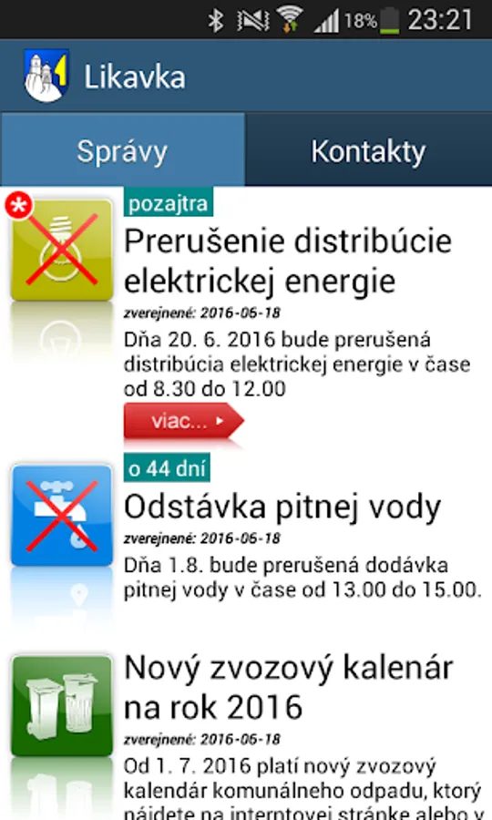 - Important information instantly and anywhere directly from the source - a power outage, water, gas, local radio reports, organization of events, closures transport atd.Informácie anywhere outside of residence immediately available (eg. When on vacation)