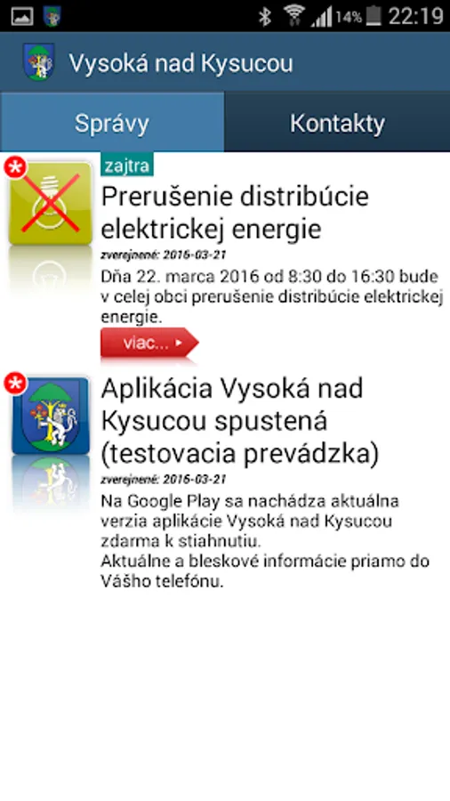 - Important information immediately anywhere and directly from the source - power, water, gas, local radio announcements, organized events, traffic shutdowns, etc.
