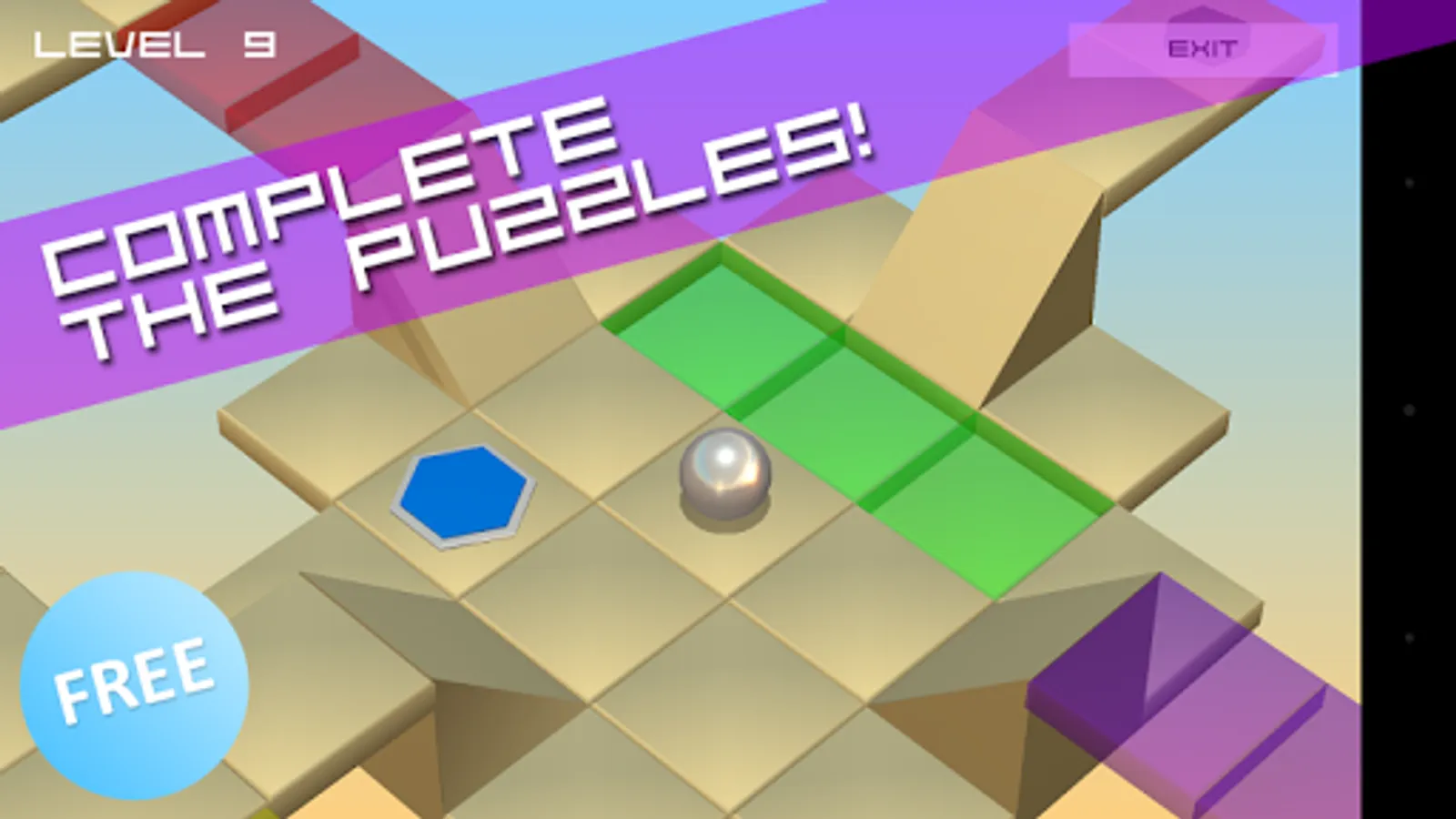 Control the ball and keep the balance! Play through the accelerometer and enjoy this color mixing game moving around the 3d puzzle.