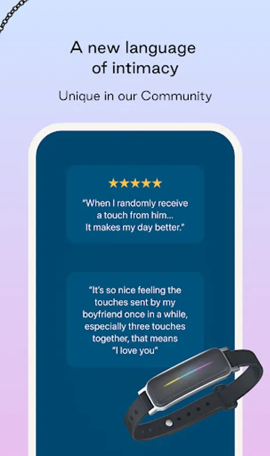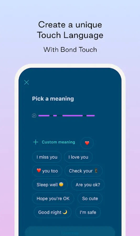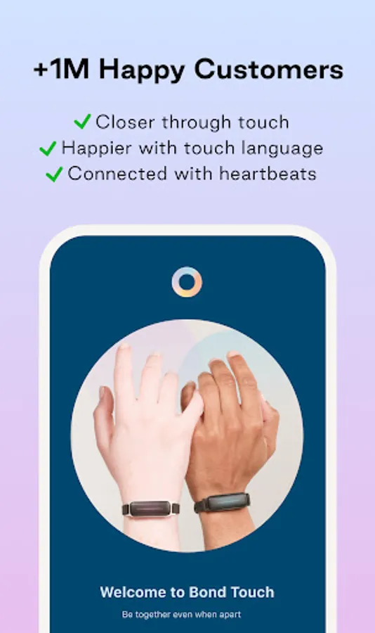 Bond Touch is the app that supports the Bond Touch and Bond Touch More bracelets - the bracelets that keep loved ones connected through touch, and Bond Heart - the pendant that lets you feel your loved ones heartbeats wherever you are. With a simple tap, your love feels a gentle vibration and sees a light through their Bond Touch bracelet that lets them know you are thinking of them, no matter where they are on the planet. Holding gently your Bond Heart pendant let's you feel heartbeats stored within the app's heartbeat library.