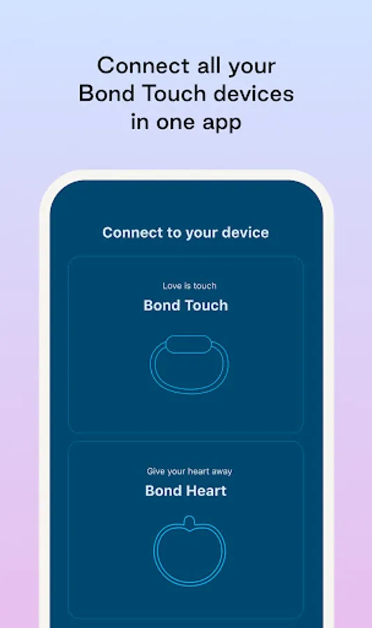 Use the app to connect your Bond Touch bracelet or Bond Heart pendant to your phone and to your partner. Once you install the app, just follow the instructions and you are ready to start bonding or feeling heartbeats! To enjoy Bond Touch or Bond Heart, Wi-fi and Bluetooth must be enabled at all times. Remember to leave the app open in the background while using Bond Touch and Bond Heart.
