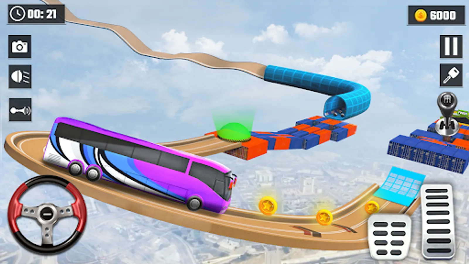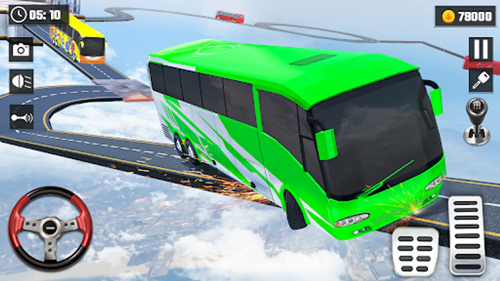 This bus stunt game is a free driving game that allows you to experience bus driving on impossible mega ramp. Stunt driving is not an easy job, that’s why drive carefully in this bus game 2021. The coach bus stunt game is available to download for free.