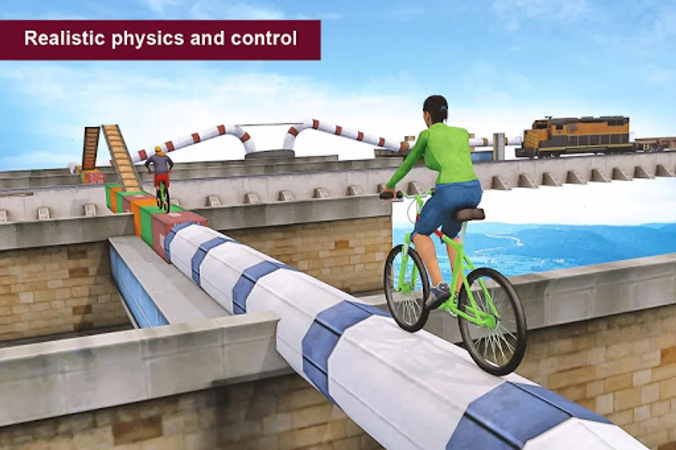 Play BMX cycle stunt driving simulator which has improved the operating of a bicycle track and made it very realistic and fun. Drive through crazy dangerous tracks with the fast speed luxury cycle in real tricky stunts tracks to become the legend driver. Crazy and amazing industrial tracks are there, ups and downs the fast moving tracks, climbing up to mountains roads along the river make this game a real life fantasy. Riding a bicycle in hilly areas and different weather condition is not that easy. If you love to take dare and ride the bicycle through heavy traffic then you must try this extreme dangerous off road bicycle simulation 2020. Impossible bicycle tracks fast and furious speedy racing bicycles are going to make you crazy. Amazing 3D design and realistic designs makes an appealing effect. Sky top industrial tracks ups and downs fast moving sharp turns brings thrill in the bicycle game 2020.