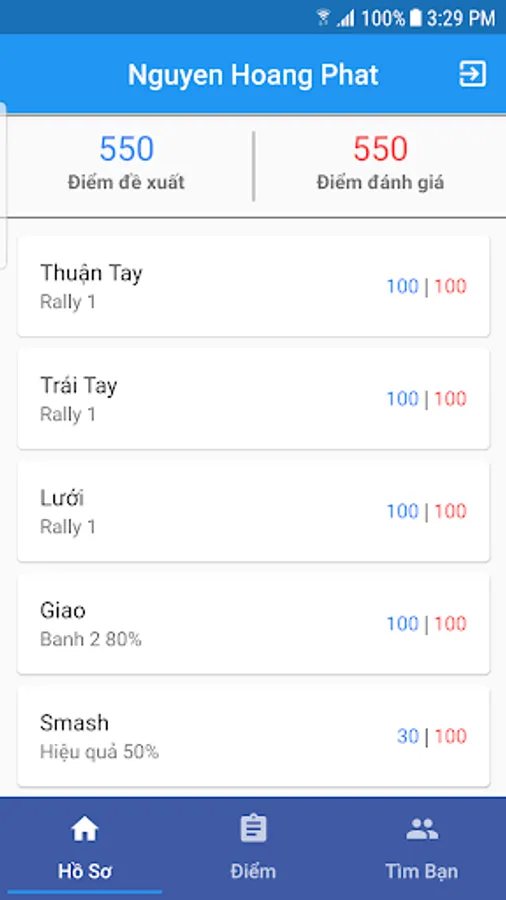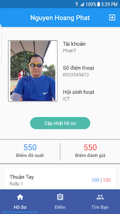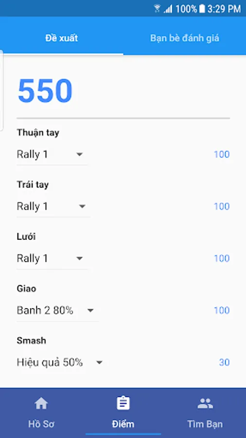 YouSport allows you to propose your own tennis score. Proposal points are displayed in green. At any time, you can edit your suggested points. Then you interact with the friends who have red points. After the matches, the red points will give you points for evaluation according to their personal opinion.