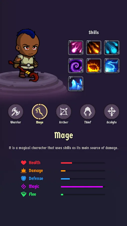 🧙♂️ Mage: a magical character with skills as its main source of damage
