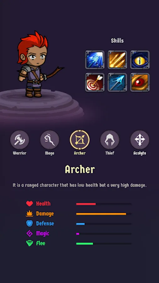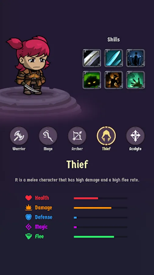 🦹♂️ Thief: a melee character with high damage and a high flee rate