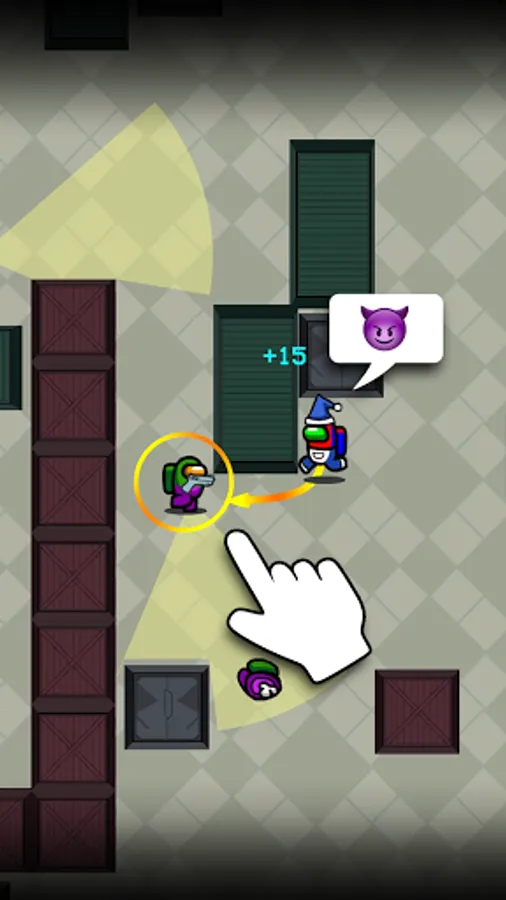 - Tap to move around the ship, kill the crewmates, and sabotage the objects.