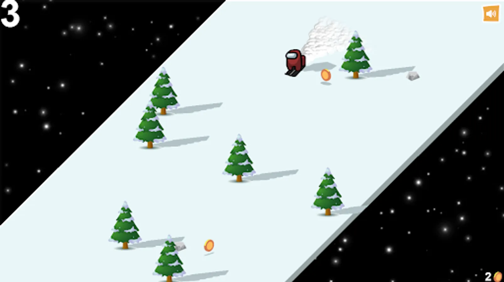IMPOSTOR SKY SKI is an arcade game where you have to ski down the mountain to complete each level.
