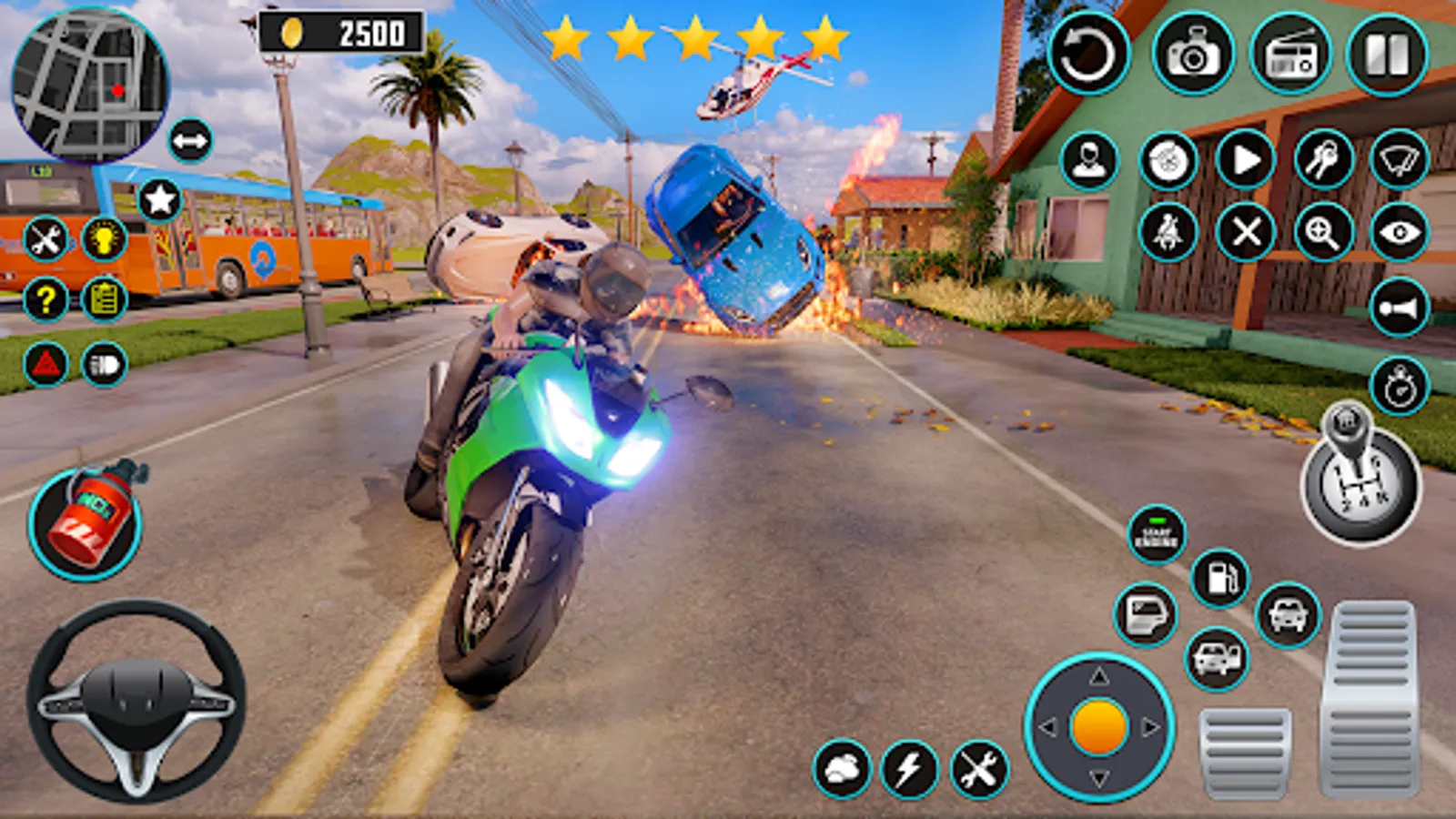 Combat fighting games and bike racing are all included in this game so that you never get bored. With bike racing feel the most amazing and thrilling experience on two wheels. Play the game and be a real moto rider on the streets. Race against other player or perform some daredevil car stunts all across the city on your bike or car.