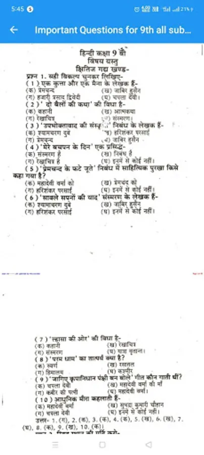 Important questions for class 9th This app will help you to study for class IX. In this app all the subjects of class 9th are organized chapter wise, important questions of subjects like Hindi, English,social science,maths and Sanskrit, which you can read easily, with the help of this app you will get It will help in getting good marks in the exam. The questions given in this app have been taken out by reputed teachers.The answers to the questions in this app have been written in a very simple and readable manner so that no student has any problem in reading the entire subject of this app is based on class 9th NCERT.