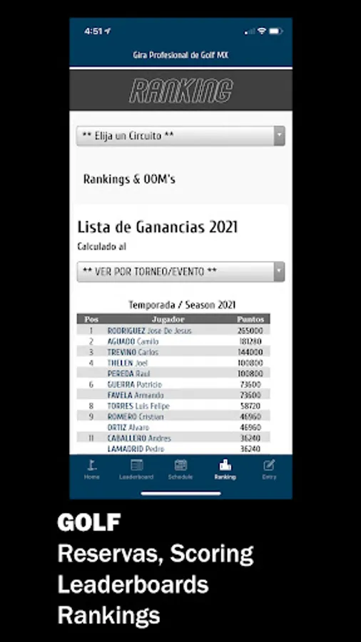 This is an App access to all the action of the Mexican Gira de GOLF in your Android devices
