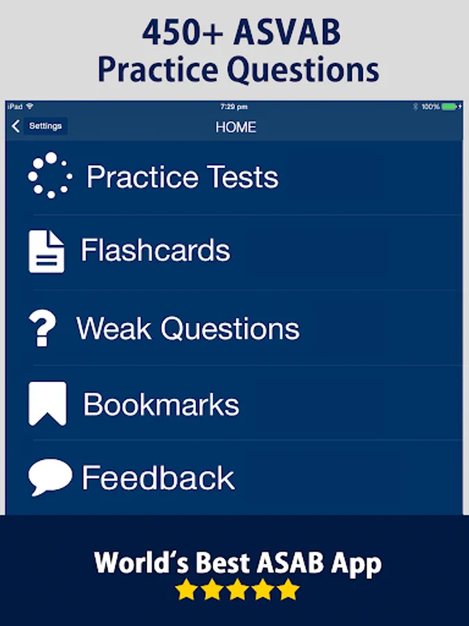 ASVAB Practice test Flashcards is a free asvab practice test app for your android device. Using this free flashcards questions prep app, you can practice asvab test questions using flashcards and can keep a record of your wrong answers so that you can do better asvab test prep by focusing on the weak areas. This is not only an asvab exam practice questions app, but also a complete study guide to prepare for the navy and army Armed Services Vocational Aptitude Battery test. This is a powerful exam simulator that allows you to take customized Practice test and give detailed explanation for each answer.