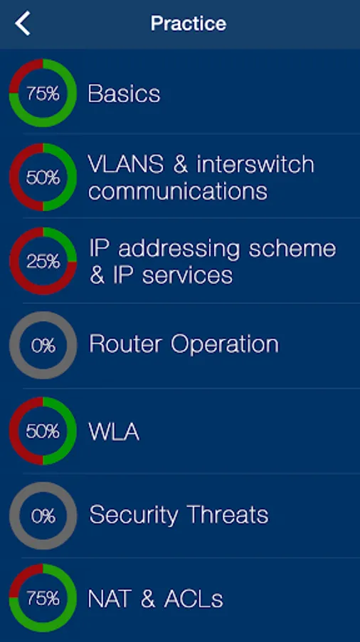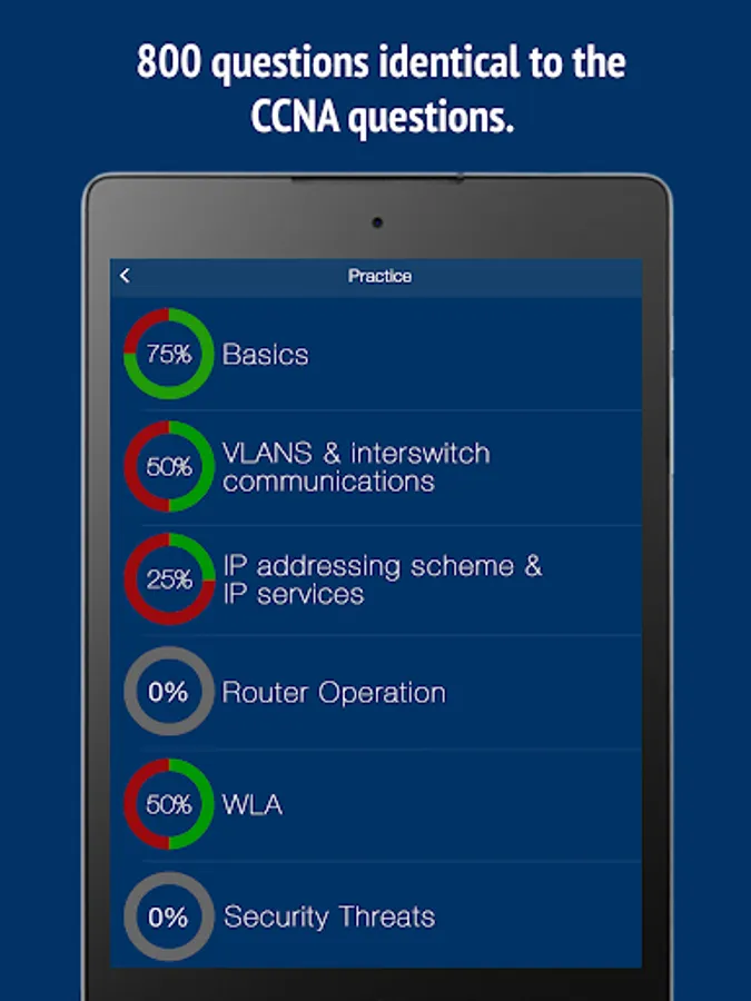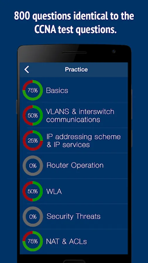 CCNA practice exam simulator is a free CCNA exam prep app for Cisco Certified Network Associate certification examination. It is a complete CCNA study guide to prepare you for actual ccna exam by taking ccna practice exam, studying ccna flashcards and mock test. This application is designed to take ccna practice exam on the go without internet on your mobile device. This ccna practice exam prep app record you performance and highlight the weaker area to let you focus on them while studying for ccna exam. All questions are formulated by experts closer to the actual ccna exam.