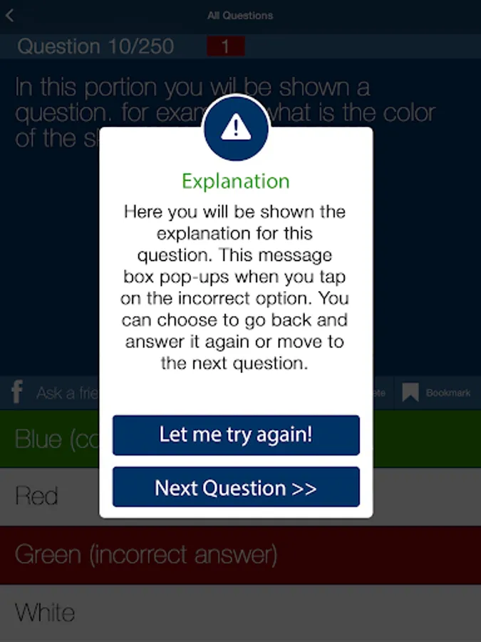A collaboration of a tracking meter with a progress bar helps user to self-evaluate their GED Test Prep. Users can benefit from features such as flashcards, mock tests, practice questions and quizzes. Users can also contact our experts if they are stuck on a question!