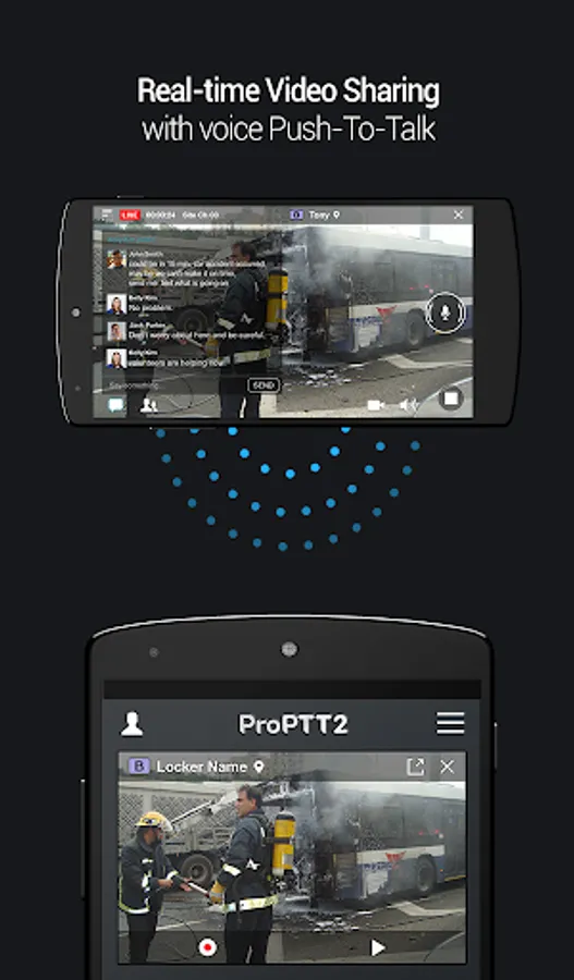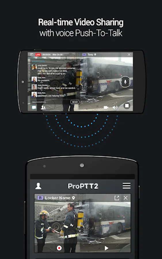 ProPTT2 provides a real-time HD quality video sharing function along with voice Push-To-Talk.
