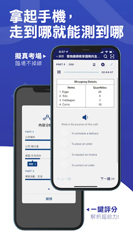 Completely realistic, no need to fiddle around with CDs, set alarms, and start answering. The audio file will be played automatically at the beginning of the test, and the system will help you time according to different modes, just like you are actually taking the test!