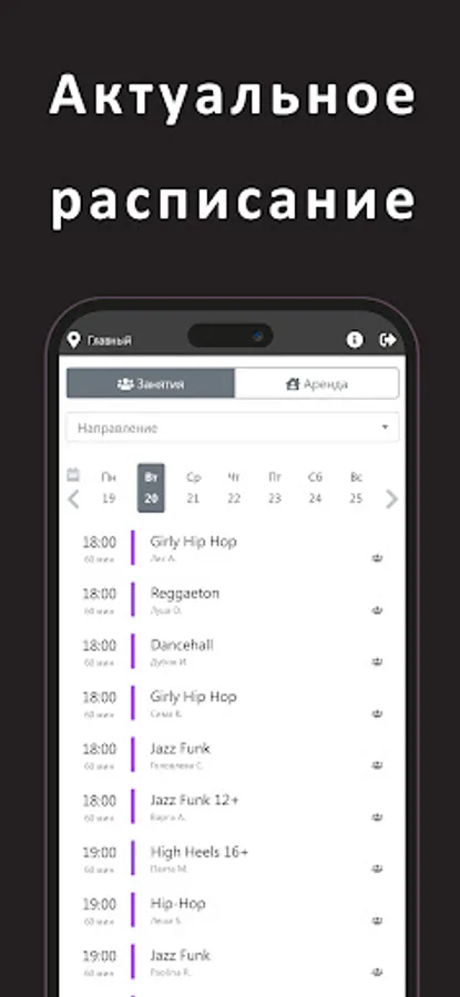 Applications for viewing the schedule, the current subscription, visiting and enrolling in classes, as well as renting MDC NRG halls.