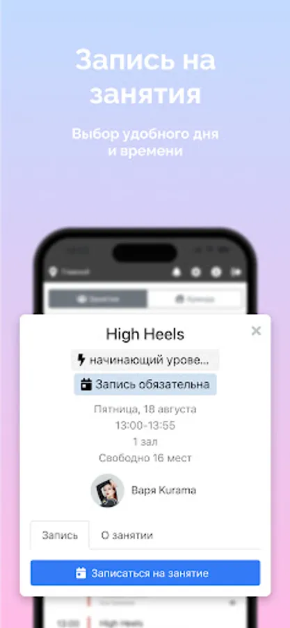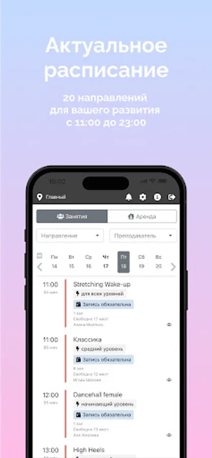 Using the application, you can view the schedule, sign up for classes, keep track of your current subscription and your visits to S17.