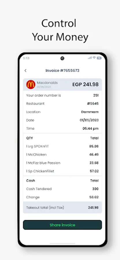قم بمسح كود QR والحصول على فاتورتك في الحال, لديك العديد من العروض التي يمكنك الاستمتاع بها لدى فروع المتاجر والمطاعم المتنوعة لزيادة متعة تسوقك , تمتع بنقاط أكثر على كل عملية شراء, احتفظ بجميع فواتيرك في خوادمنا الآمنة حتى تتمكن من استعادة تفاصيل الفاتورة في أي وقت بأسهل طريقة ، قم بتصنيف مشترياتك في فئات متباينة وتمتع بسهولة الاطلاع أين تنفق أموالك..