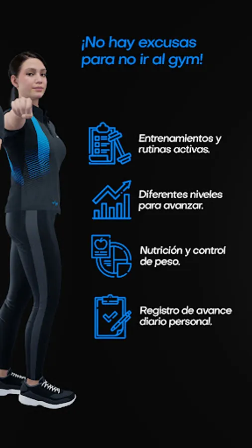 Nuestra app te ayudará a realizar tus entrenamientos de todos los días. Puedes elegir tus rutinas, nivel de dificultad y el área de tu cuerpo que quieras ejercitar.