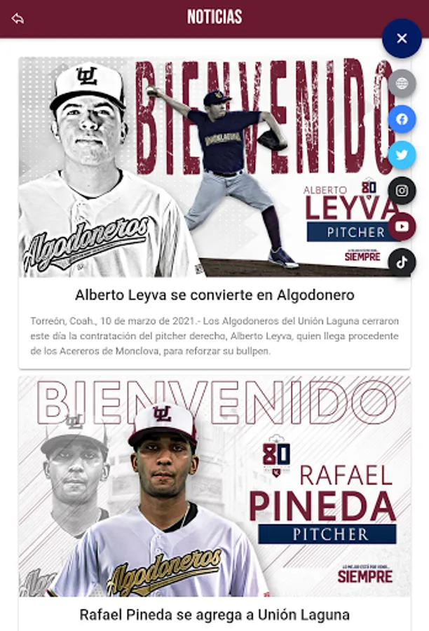 Access social networks and make the purchase of your ticket or subscription, access our online store. Receive your notifications about our promotions and everything related to the Algodoneros de la Unión Laguna.