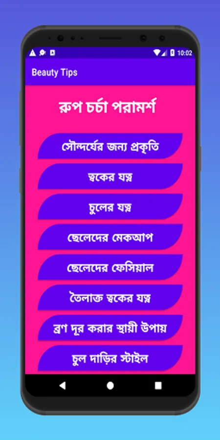 সুন্দর হতে চাই না এমন কোনো মানুষ এই পৃথিবীতে খুঁজে পাওয়া যাবে না । সারাদিনের নানা কাজের ব্যস্ততায় চেহারা রোদে-পুড়ে দাগ পড়ে যায়,ত্বক টান টান ভাব চলে আসে, উজ্জ্বলতা নষ্ট হয়ে যায় ।কেমিক্যাল যুক্ত প্রোডাক্ট ব্যবহার করে, যা আমাদের ত্বক ক্ষণসময়ের জন্য উপকারী হলেও এটি দীর্ঘস্থায়ী নয় । প্রাকৃতিক ভাবে সুন্দর হলে সেই সুন্দর্য কখনো হারাই না। দীর্ঘ সময় বৃষ্টিতে ভিজে কাজ করে ইত্যাদি নানা কারণে যারা ত্বক এর সৌন্দর্য হারিয়ে ফেলে তারা কোনো কিছু না ভেবে আমাদের এপ্পস ইনস্টল করুন । ঘরে বসেই যদি প্রতিদিন নিয়মিত একটু করে রূপচর্চা করেন তাহলে চেহারার উজ্জ্বলতা নষ্ট হয় না, ত্বক হয়ে উঠবে কোমল সতেজ। ঘরে বসে মেয়েদের মেকাপ করতে এই অ্যাপটিতে খুব ভালো টিপস দেওয়া আছে ।