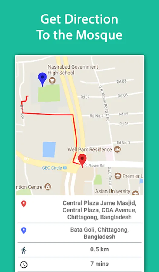 This app will show which mosques are nearest to you, also it will provide direction to the mosques.
