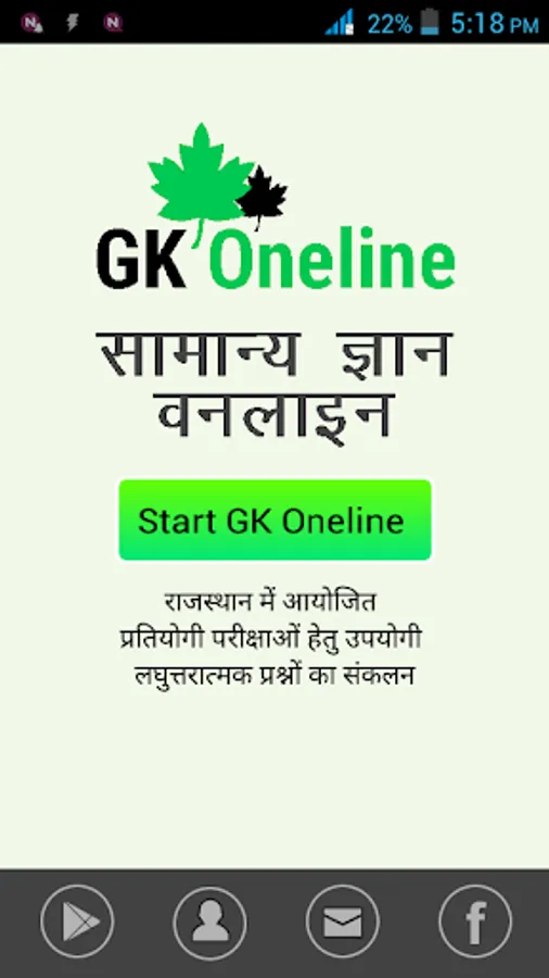 GK Oneline app contains one line Questions and answers to prepare for Competitions. It contains more than 3000 Important Questions. It will be very useful for RAS Exam, Patwari Exam, Clerk Exam by RPSC and REET.