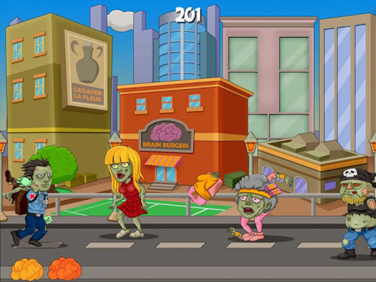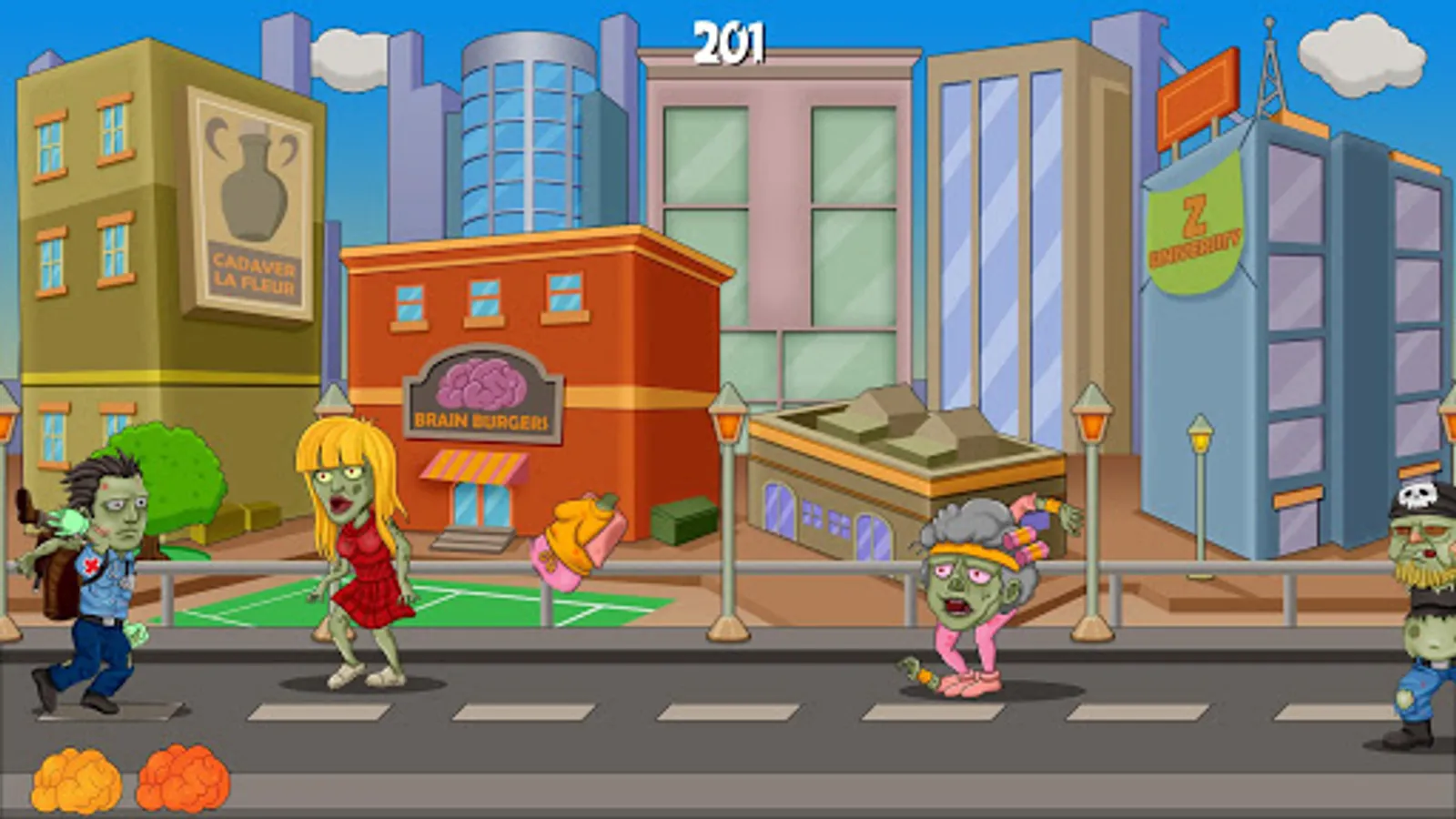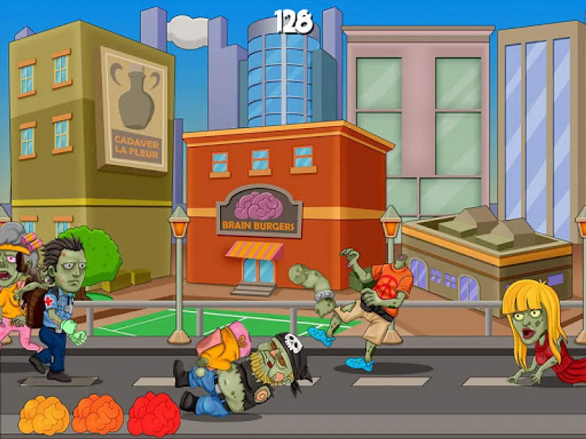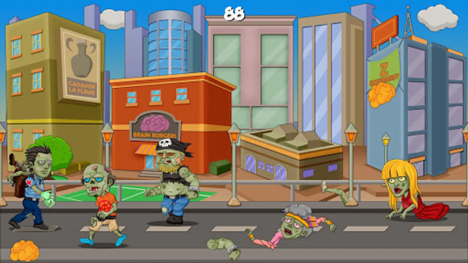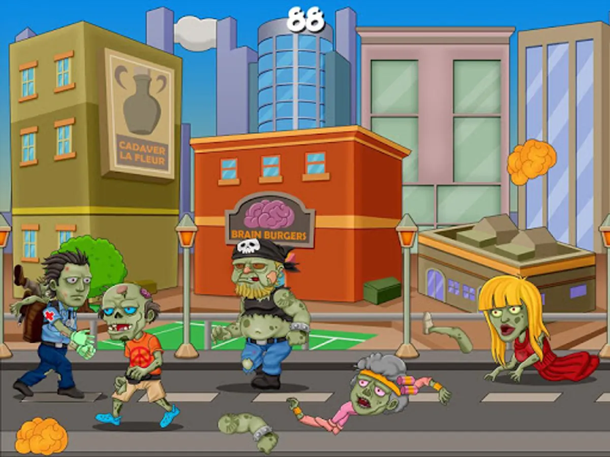 ● Collect 3 brains and you get a RED brain. Tap the red brain to heal ALL zombies currently on screen and slow down the running speed. The running speed slows down more if you heal more with the red brain!