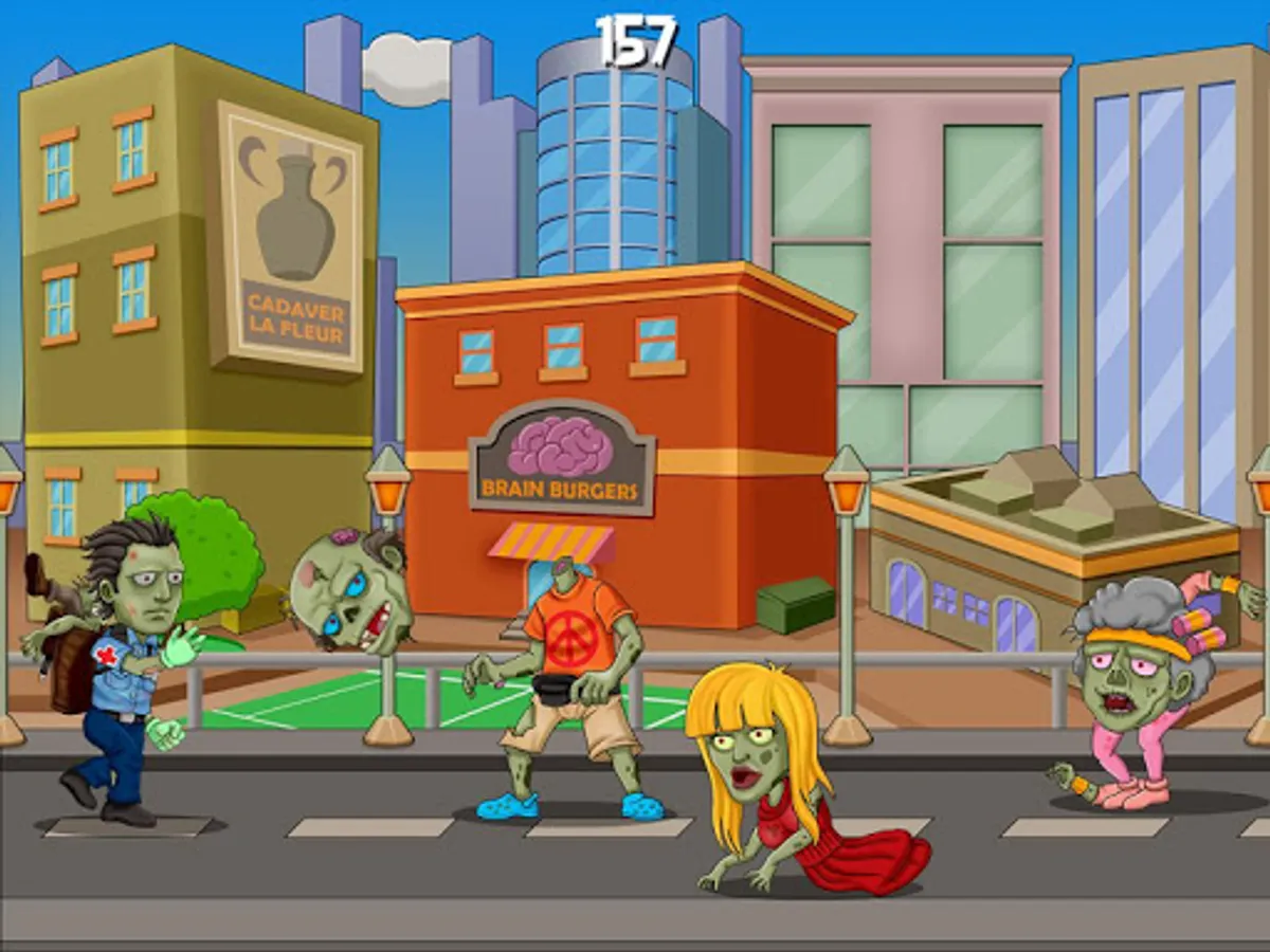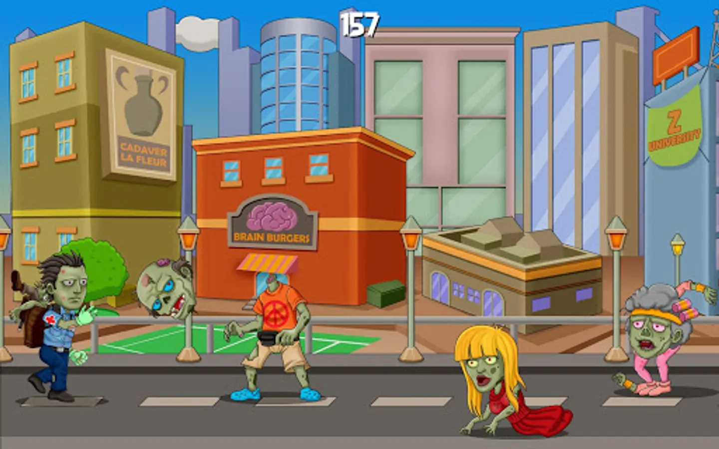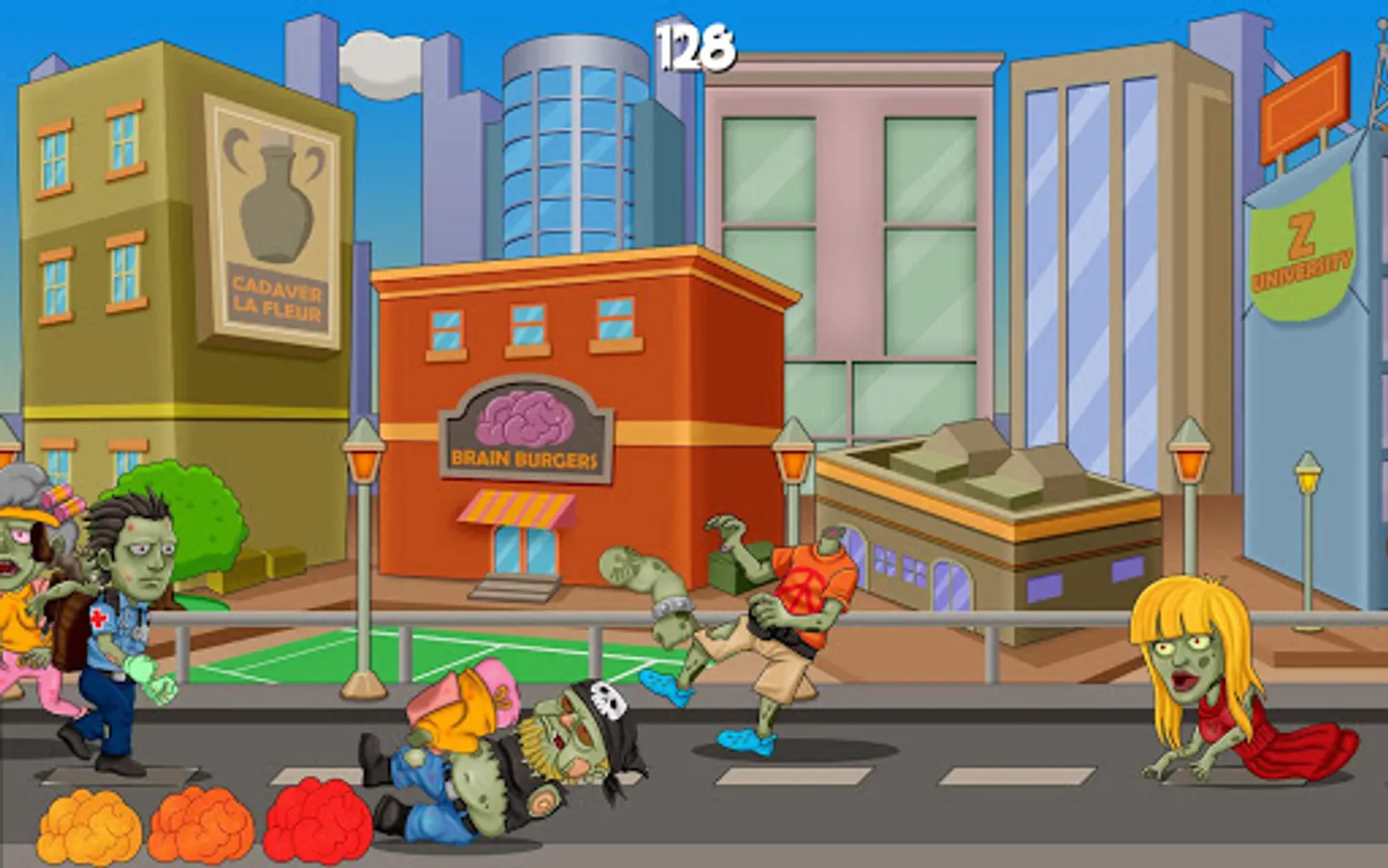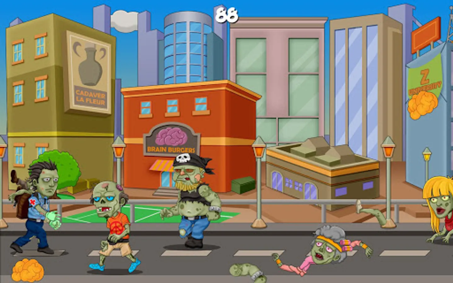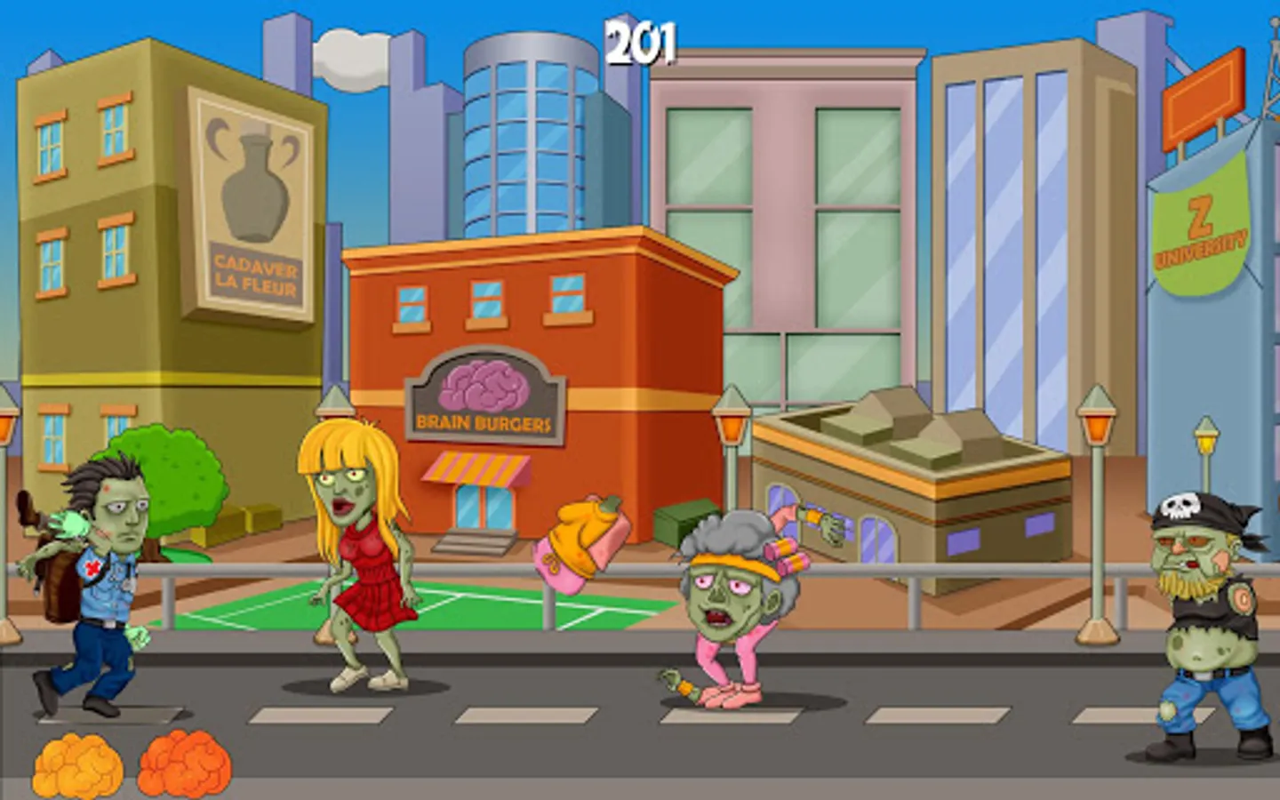 ● Collect 3 brains and you get a RED brain. Tap the red brain to heal ALL zombies currently on screen and slow down the running speed. The running speed slows down more if you heal more with the red brain!