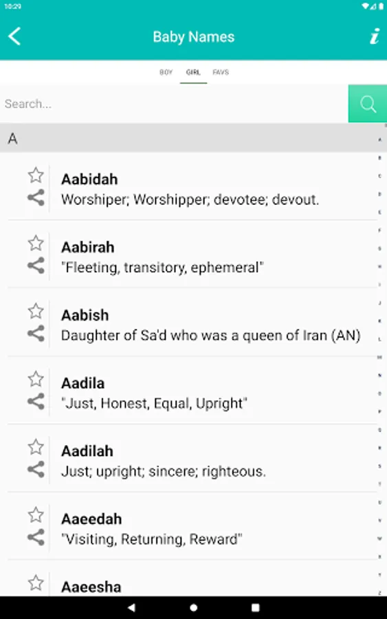 Muslim baby names - Islam is your one stop app for browsing hundreds and thousands of Islamic baby names with meaning on you're Android Phones & Tabs :)