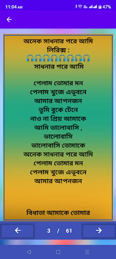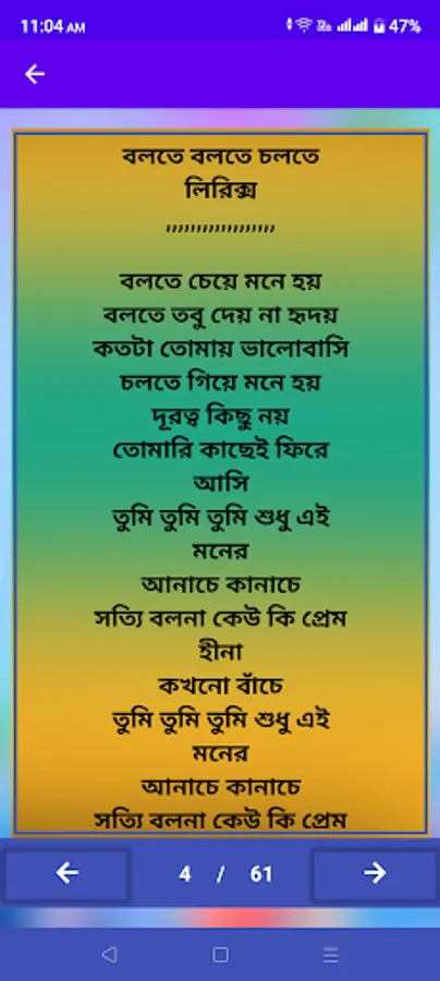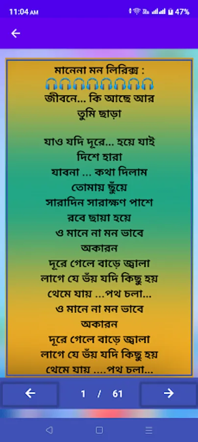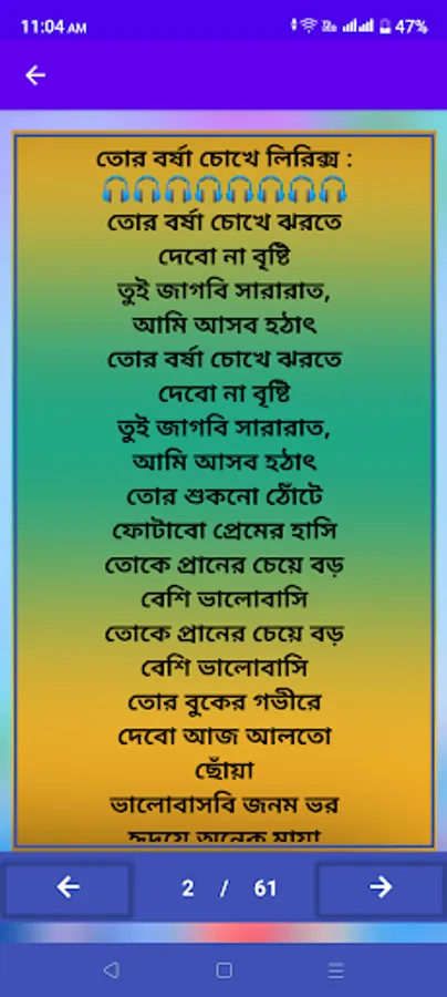 *এ জীবনে যারে চেয়েছি আজ আমি তারে পেয়েছি, ইত্যাদি আরো সকল ধরনের গানের লিরিক্স খুব সহজেই উপভোগ করতে পারবেন তাই দেরি কিসের এখনই উপভোগ করুন আমাদের এই অ্যাপ। অ্যাপ টি ভালো লাগলে ৫ স্টার রেটিং দিতে ভুলবেন না ধন্যবাদ সবাইকে।