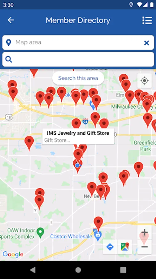 • View the IMS Directory and Restaurants in list or map view